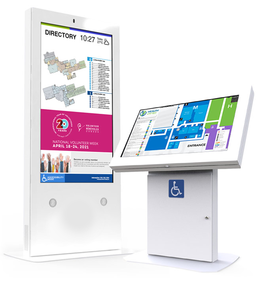Our Digital and Interactive Kiosks have industrial-grade LCD boards. They have high luminosity, so the contents are visible even in direct sunlight. 700 nits brightness for indoors and up to 4000 nits for outdoors.